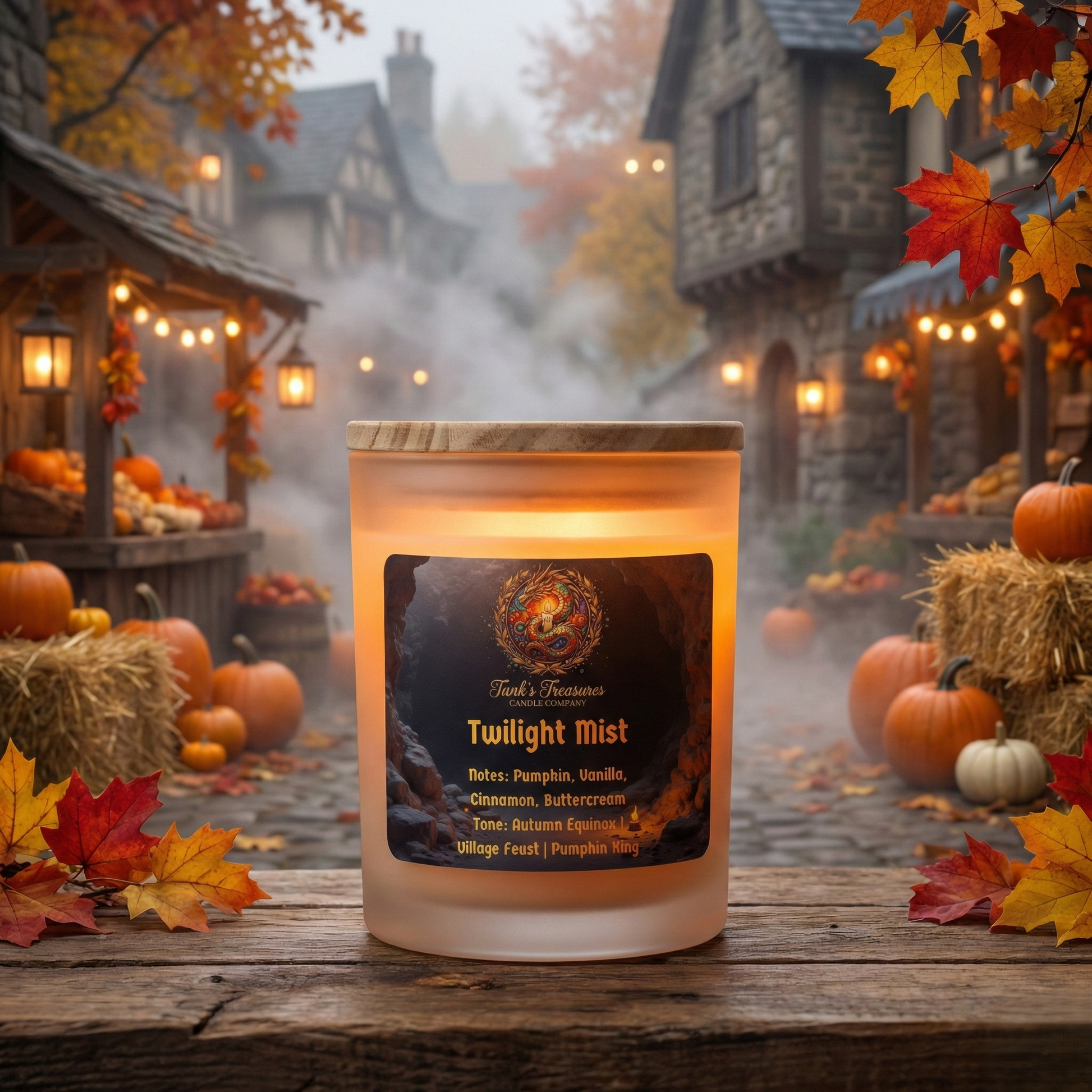A magical autumn evening. This frosted glass vessel glows with a soft orange light, like a will-o'-the-wisp in the autumn woods. The air is thick with a bold swirl of clove, cinnamon, and nutmeg. Creamy pumpkin and smoky vanilla melt through the heart of the fragrance—a sophisticated take on the village feast.