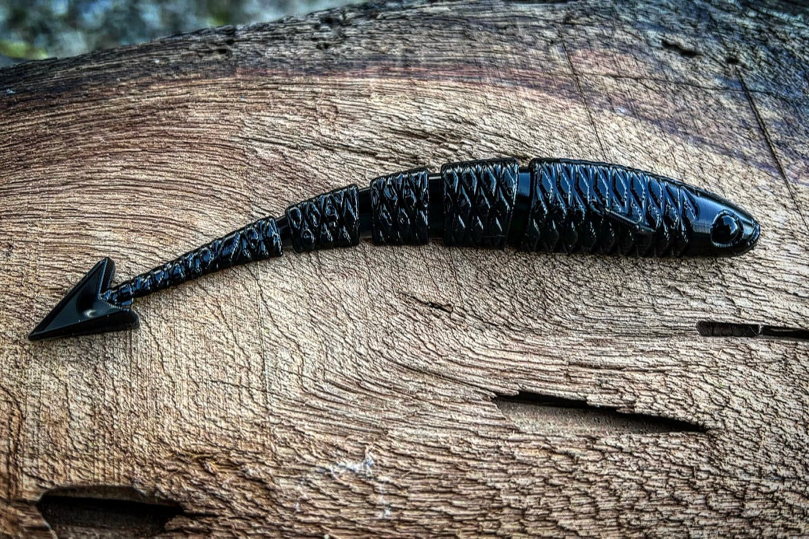 With a ribbed midsection, vertically flanged arrowhead tail, 3D eyes, angled pectoral fin, and the industries FIRST curved soft plastic body, our “Warbird” will soon be known as the preferred “fluke” styled bait on the market. With all of it’s attributes put together, the diving and darting action the Warbird displays will have even the most stubborn Bass swimming in for a taste! Due to it’s vertically aligned tail, the Warbird also outshines other baits while utilized as a chatterbait trailer. When cashing checks is your goal, lean on the bait that has the erraticness of a WW2 Warbird dipping and dodging enemy firepower!